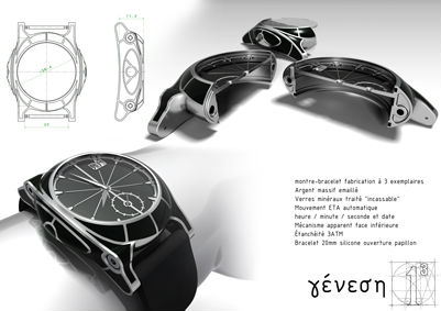 La gamme de montres GENESIS est née de l'idée qu'une montre-bracelet n'est pas qu'un outil affichant le temps écoulé depuis une référence arbitraire, c'est avant tout un objet quotidien et intime qui nous suit et vieillit avec nous. Un objet lié au corps et au temps.