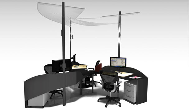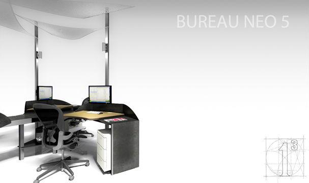 L'ensemble de bureaux Neo 5 à été conçu pour optimiser l'espace de travail en open-space.
