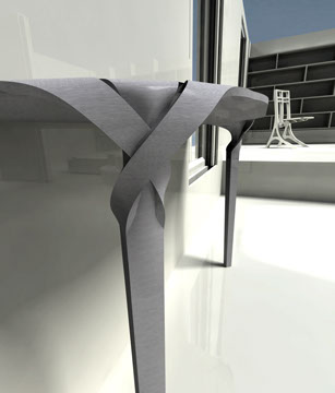 La question du Noeud, la rencontre entre des éléments de direction de forme et de fonction différentes, est une problématique récurrente dans le dessin des mobiliers.