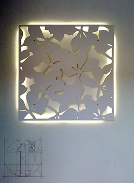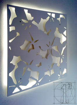 Plaque d'aluminium 60 x 60 cm de 2mm d'épaisseur laqué blanc mat, écartée de 30mm du mur.