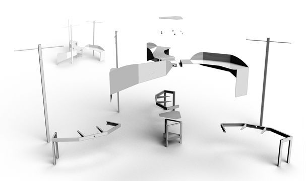 Cet ensemble de bureaux fonctionne comme un motif pour organiser l'open-space